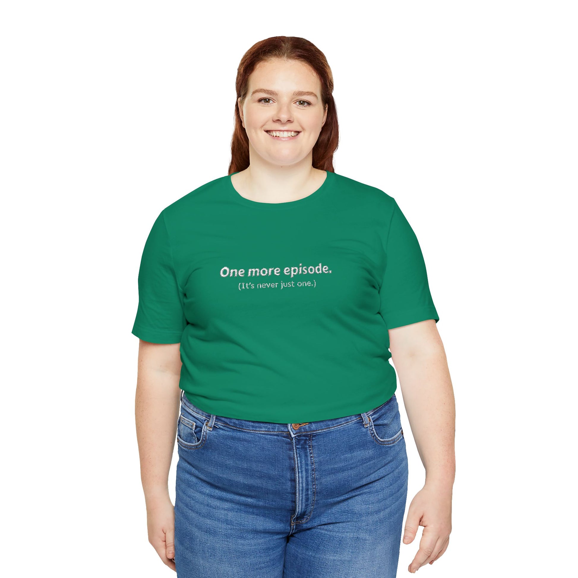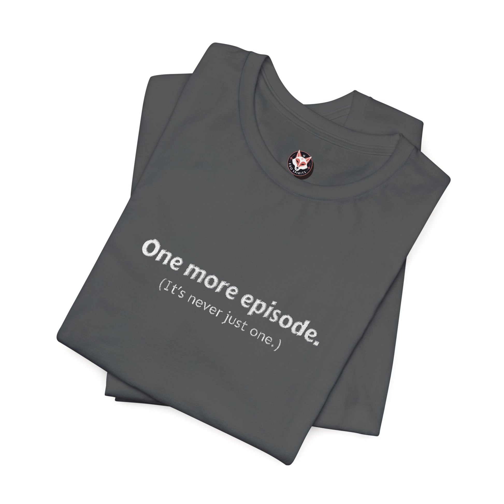 This “One More Episode (It’s Never Just One)” embroidered T-shirt is a must-have for anime fans, binge-watchers, and night owls who live by the stream.